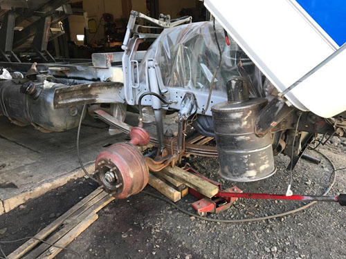 Uppfært 15.8.2017 Þrátt fyrir að bíllinn væri að upplagi góður voru nokkur atriði sem mátti laga og gera betri eins og gerist og gengur með gamla bíla. Að vori 2017 var tekin ákvörðun um að taka bílinn töluvert í gegn og laga í honum ýmis atriði sem betur mátti fara. M.a. var ákveðið að setja nýja glussakistu fyrir pallinn svo fjarstýra mætti öllum hreyfingum og einnig var ákveðið að taka bæði hús og grind og mála það allt upp á nýtt og skipta um lit á bílnum. Skemmst er frá því að segja að sú vinna vatt upp á sig og varð að lokum að stórkapphlaupi við að klára hann fyrir Landsmót Fornbílaklúbbs Íslands sem haldið var á Selfossi síðla júnímánaðar 2017, en það rétt tókst, örfáum klukkutímum fyrir brottför. Hér á eftir fer myndasería af þessari lagfæringarvinnu og ætlum við að láta myndirnar tala sínu máli að þessu sinni.